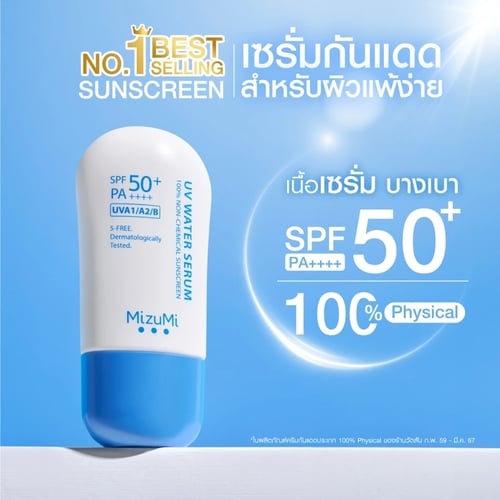 ปฏิวัติวงการครีมกันแดด ด้วยการเป็น 100% Physical Sunscreen ที่ให้เนื้อสัมผัสเบาสบาย คล้ายเซรั่มแบบน้ำ เต็มเปี่ยมด้วยความอ่อนโยน เหมาะกับผิวบอบบางแพ้ง่ายเป็นสิว