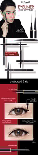 อายไลน์เนอร์ 2 หัวในแท่งเดียว ด้านหนึ่งเป็นหัวเมจิกปลายเรียว ให้เส้นสีดำคมกริบ เนื้อสีชัด แห้งไวไม่เลอะ