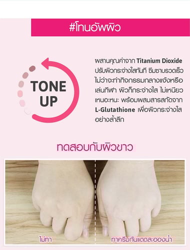 อีกระดับของการป้องกันแสงแดดกับครีมกันแดดละอองน้ำ ใช้ได้ทั้งหน้าและตัว สูตรใหม่ บางเบากว่าครีมกันแดดทั่วไปแต่ให้การบำรุงขั้นสูง พร้อมป้องกันแสงแดดเข้มข้น ผสานคุณค่าจาก Titanium Dioxide ปรับผิวกระจ่างใสทันที มาพร้อมนวัตกรรมแตกตัวเป็นละอองน้ำ เย็นฉ่ำ เข้าดับความร้อน สยบความแห้งกร้าน ซึมซาบรวดเร็ว ไม่ว่าจะทำกิจกรรมกลางแจ้งหรือเล่นกีฬา ผิวก็กระจ่างใสไม่เหนียวเหนอะหนะ ผสมสารสกัดจาก L-Glutahione เพื่อผิวกระจ่างใสอย่างล้ำลึกและมอยส์เจอร์ไรเซอร์เข้มข้นบำรุงผิว ผิวสวยครบสูตรในขั้นตอนเดียว! ทั้งกันแดด ทั้งบำรุง พร้อมดับความร้อน
