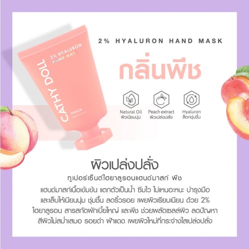 1.กลิ่นส้ม บำรุงผิวด้วย 2% วิตามินซี ที่ช่วยให้ผิวกระจ่างใสอย่างเป็นธรรมชาติและลดเลือนจุดด่างดำ พร้อมเข้าฟื้นฟูมือและเล็บที่ดูแห้งกร้านด้วย 1% ไฮยาลูรอนและสารสกัดจากผักเบี้ยใหญ่ ช่วยให้กลับมาเนียนนุ่มชุ่มชื้นน่าสัมผัส พร้อมลดเลือนริ้วรอย เผยผิวกระจ่างใสแลดูอ่อนเยาว์