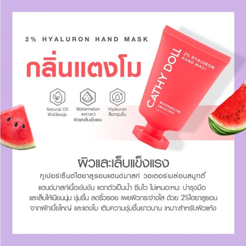 4.กลิ่นแตงโม มีสารสกัดจากแตงโม ช่วยบำรุงผิวมือและเล็บให้แข็งแรง ทั้งยังช่วยเติมเต็มและกักเก็บความชุ่มชื่นให้ผิว แลดูสุขภาพดียาวนานตลอดวัน
