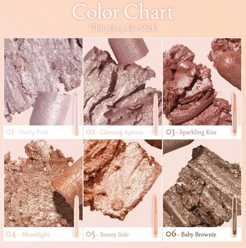 อายแชโดว์สติ๊กเนื้อชิมเมอร์ #กลิตเตอร์ป็อปตาวิ้ง ชิมเมอร์เนื้อละเอียด ไม่เป็นเกล็ด ไม่เป็นฝุ่นผง ชิมเมอร์เล่นแสงสวยแต่ยังสามารถใช้ได้ทุกวันโดยยังดูเป็นธรรมชาติ โทนสีที่ครีเอทมาเพื่อการแต่งตาที่หลากหลาย เป็นได้ทั้งอายแชโดว์ อายแชโดว์เบส ดอลลี่อายไลเนอร์ หรือไฮไลท์ พร้อมคุณสมบัติติดทนนาน กันน้ำ กันเหงื่อ ทนต่อความมันบนเปลือกตาได้ยาวนาน