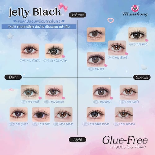 **คุณสมบัติพิเศษ ขนตาปลอม แมนชอง เจลลี่อาย กาวสีดำ**