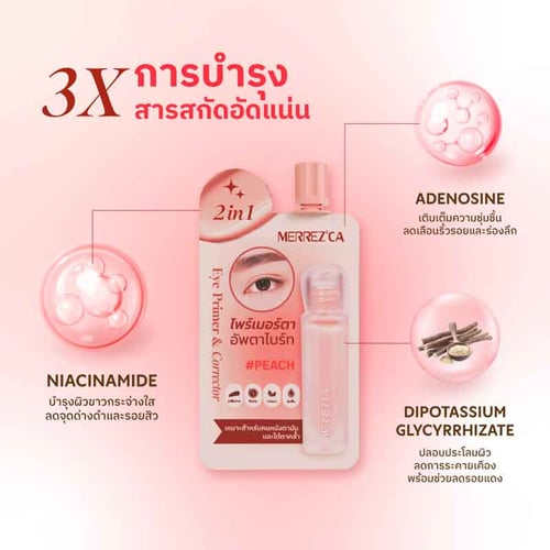 Eye Primer & Corrector เป็นผลิตภัณฑ์ที่ใช้สำหรับทาบริเวณเปลือกตาใต้ตาในขั้นตอนการแต่งตา เพื่อปรับความไบร์ทให้ใต้ตา และช่วยเปลือกตาให้อายแชโดว์มีความติดทน และสามารถยึดเกาะกับเปลือกตาได้ดีด้วยนวัตกรรมพิเศษ Gel-to-Cream ที่ผสานคุณสมบัติทั้งช่วยเติมความชุ่มชื้นล้ำลึกถึง 89%