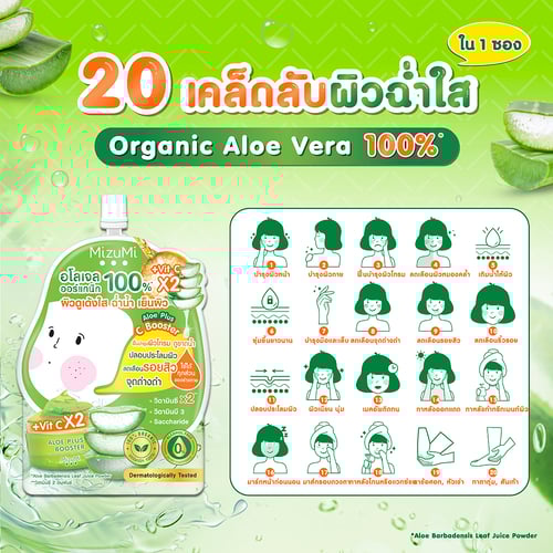 เจลว่างหางจระเข้ออร์แกนิก 100% เนื้อบางเบา ซึมไว ผิวดูเด้งใส ฉ่ำน้ำ เย็นสบายผิว ผสานวิตามินซี 2 อนุพันธ์