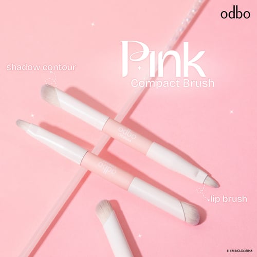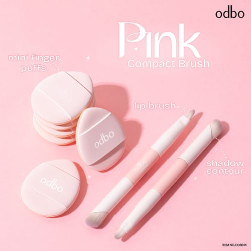 odbo pink compact brush #Shadow contour & lip Brush + mini finger puffs ( แปรงแต่งตา + แปรงทาลิป + พัฟแต่งหน้า 2 ชิ้น ) แปรงแต่งหน้าพร้อมพัฟมินิในเซ็ตเดียว แปรงแต่งหน้า 2 หัว ที่ด้านหนึ่งใช้สำหรับคอนทัวร์เปลือกตา อีกด้านหนึ่งสำหรับลงสีลิปสติก มาพร้อมขนที่นุ่มสบายผิว