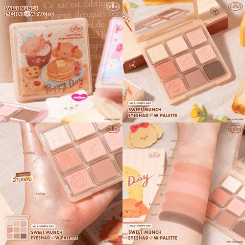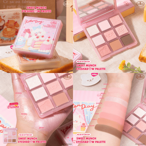 พาเลทอายแชโดว์ 9 เฉดสี เนื้ออายแชโดว์เนียนละเอียด เม็ดสีคมซัด ติดทนนาน เกลี่ยง่ายเนื้อปัดแล้วไม่จับตัวเป็นก้อน โทนสีน่ารักใช้งานได้ในทุกวัน มีทั้งเนื้อแมทท์ ชิมเมอร์และกลิตเตอร์ เม็ดสีแน่น ติดทนนาน ช่วยให้